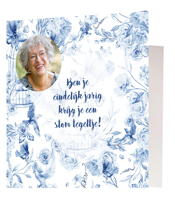 Wenskaart met persoonlijke foto en tekst - Delftsblauw Tegeltje